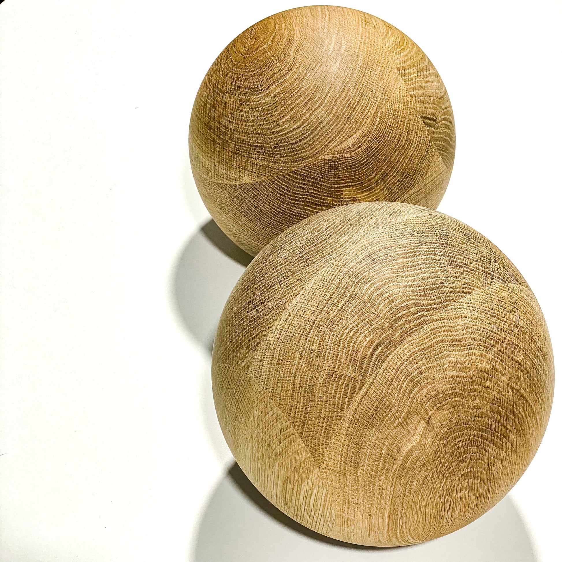 High quality, natural OAK hardwood spheres, hand crafted in the UK from a joined piece of wood. The material is 100% natural American White Oak hardwood. The balls are hand turned and then sanded to a very smooth finish. Every single sphere is unique in appearance. The balls are organic and suitable for joinery or DIY parts or decorative displays and many other purposes such as ball feet, coffee table leg, bed feet, marble coffee table leg, furniture leg, Bed leg.
